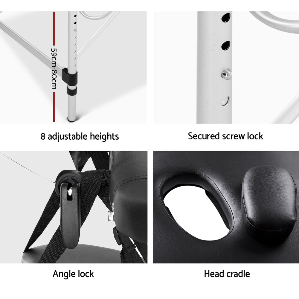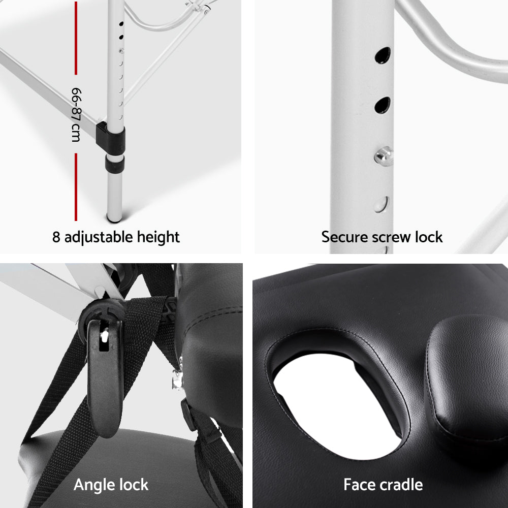 Zenses Massage Table 70cm 2 Fold Aluminium Massage Bed Portable Beauty Therapy Black -