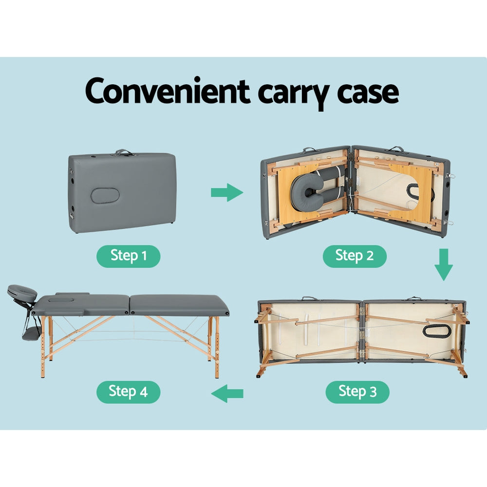 Zenses Massage Table 56CM Width 2Fold Portable Wooden Therapy Beauty Bed Grey -
