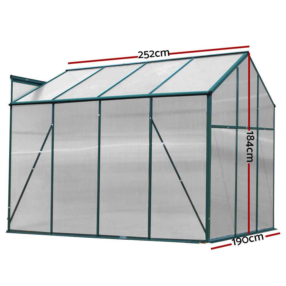 Invernadero Greenfingers de 2,52 x 1,27 x 2,13 m, cobertizo de jardín de aluminio y policarbonato -