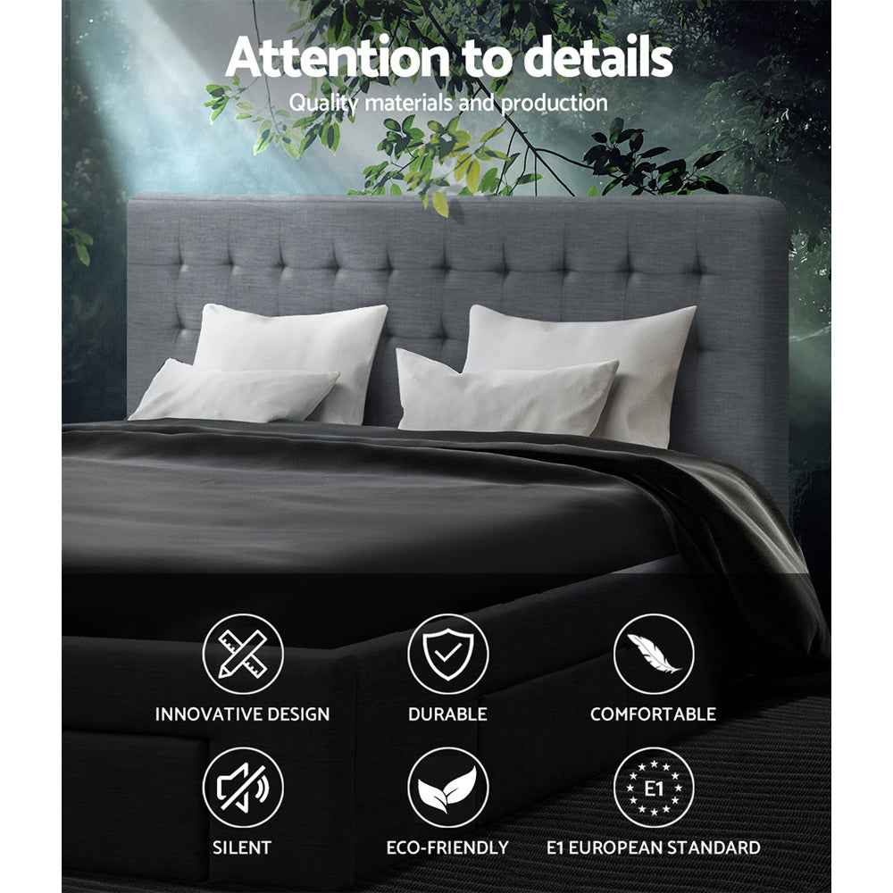 De particular interés es el cabecero capitoné que realmente le da al Bed Frame un estatus de clase de diseñador. Simplemente rezuma elegancia y sofisticación en cada detalle. Además, debajo del Bed Frame, encontrará cuatro cajones espaciosos para guardar toda su ropa de cama y sábanas de temporada y una gran cantidad de otros elementos personales esenciales. Se acabó el desorden y tendrá un montón de espacio de almacenamiento utilizable justo debajo de usted. Mejor aún, los cajones están colocados sobre ruedas para un fácil acceso deslizándolos hacia adentro y hacia afuera.