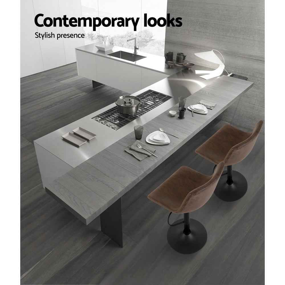 Relájese y cene con estilo con nuestros taburetes de bar Artiss. Con su diseño clásico y su aspecto moderno, este taburete de bar es un elemento imprescindible para cualquier persona que se enorgullezca de su hogar. El taburete de bar está tapizado en piel sintética y cuenta con un asiento acolchado de espuma extra gruesa para una máxima comodidad. El reposapiés semicircular garantiza una postura relajada mientras que el asiento omnidireccional permite girar fácilmente hacia donde se desea mirar. Mejor aún, la altura se puede ajustar fácilmente con el elevador de gas probado por SGS y la base grande garantiza la estabilidad en todo momento. Por último, un protector de suelo debajo de la base ayuda a mantener el suelo impecable sin arañazos en todo momento.