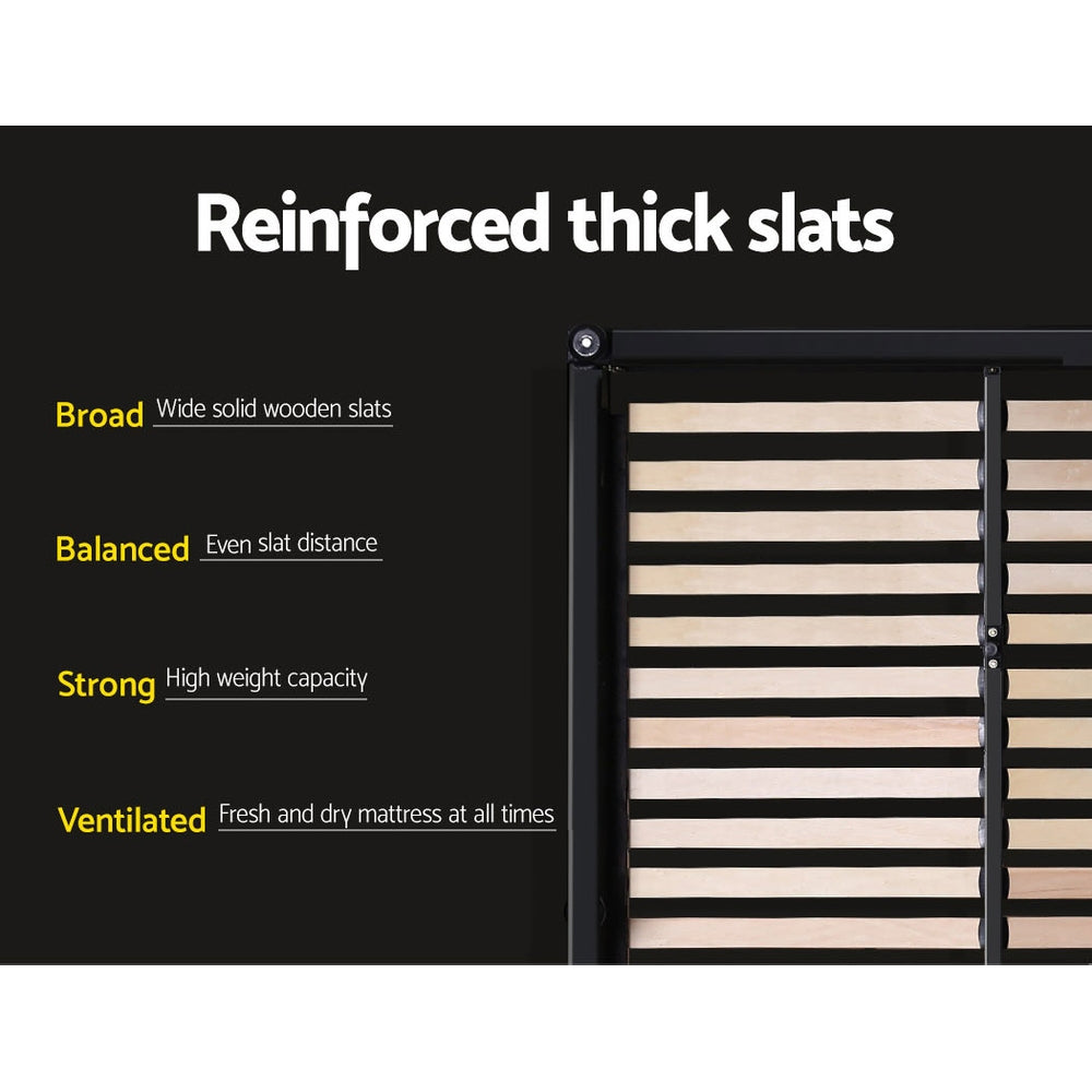 ¿Cuándo una cama es más que una cama? Cuando se utiliza un armazón de cama con elevación a gas Artiss Nino. En el exterior, el armazón de la cama parece cualquier otro armazón de cama de calidad. Bellamente acolchado con espuma generosa y cubierto con tela de lino sintético de primera calidad. Armazón de acero resistente con rieles centrales de acero de alta calidad y base de listones arqueados. Cabecero grande y cómodo. Pero con un simple levantamiento a gas de la base de la cama, el armazón de la cama se convierte en un área de almacenamiento instantánea con acres de espacio para sus elementos esenciales de cama. Simplemente guarde sus almohadas adicionales, sábanas, cojines y más en el compartimento de almacenamiento y escóndalos para la temporada. Tenga más y amplíe la capacidad de almacenamiento de su hogar con solo un movimiento de sus manos con el armazón de cama con elevación a gas Artiss Nino.