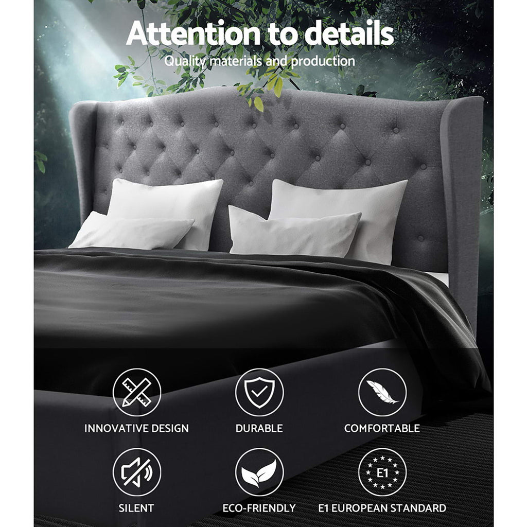 El emblemático cabecero europeo con alas refleja una majestuosidad prestigiosa, mientras que el diseño capitoné complementa su imagen general. Acolchado con espuma de alta densidad y tapizado con tela de lino transpirable no tejida, el armazón de cama Pier es cómodo para apoyarse y suave al tacto.