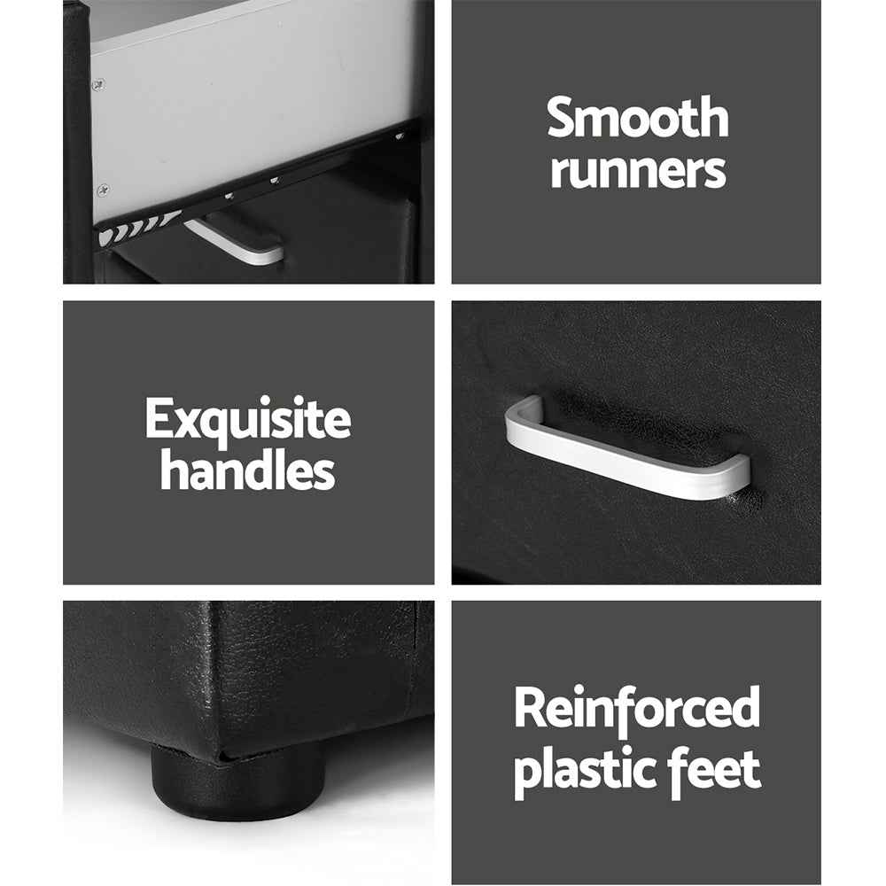 Artiss Bedside Table 2 Drawers Side Table Leather - CADEN Black