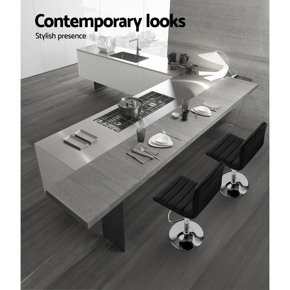 Artiss 2x Bar Stools Padded Leather Gas Lift Black