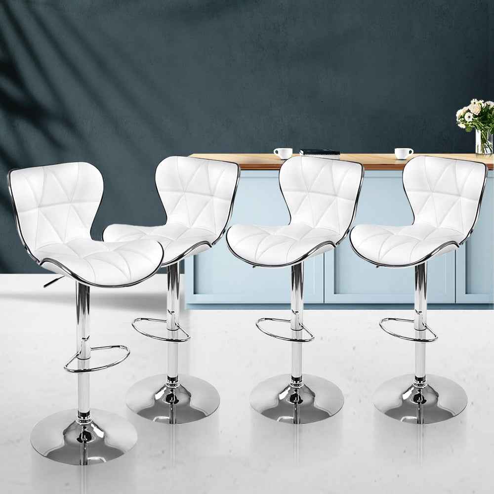 Artiss 4x Bar Stools Gas Lift Leather Seat White