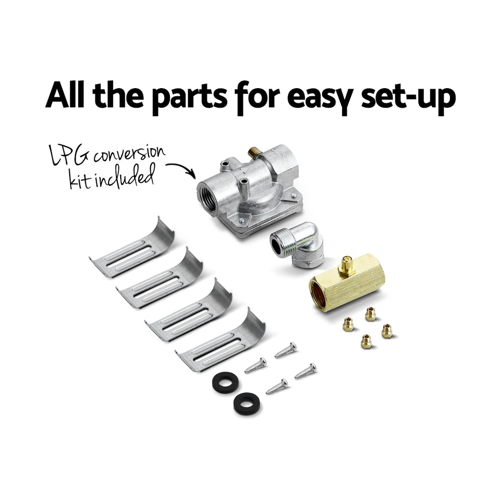 Ya sea para su hogar actual o nuevo, nuestra cocina a gas Devanti de 60 cm es justo lo que necesita para cocinar de manera fácil y sin complicaciones. Equipada con una extensa lista de características fáciles de usar para chefs, como un sistema de encendido fácil, controles de perilla galvanizados fáciles de usar con bloqueo de seguridad y un dispositivo de seguridad contra fallas de llama, la cocina también es increíblemente elegante con su superficie de vidrio templado negro. Cuenta con cuatro quemadores, incluidos dos quemadores semirrápidos, un quemador wok y un quemador auxiliar, todos con varios niveles de potencia para elegir para preparar ese plato perfecto. Las rejillas de hierro fundido sólido sostienen sus ollas y sartenes perfectamente firmes y también son duraderas y resistentes al calor. Y se incluye un soporte para sartenes para que ya no tenga que equilibrar cuidadosamente esas pequeñas sartenes o cafeteras sobre las rejillas para que se vuelquen y estropeen su cocina. La cocina está configurada de fábrica para gas natural, pero es compatible con GLP una vez que se instala el kit de conversión a GLP incluido. Potente y a la vez totalmente segura, esta placa de cocción promete muchos momentos de cocina deliciosa y sin complicaciones con la combinación perfecta de sofisticación y clase para su cocina.
