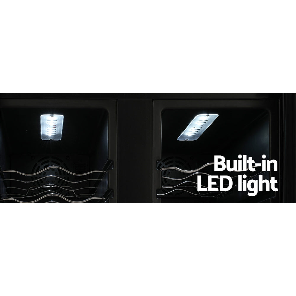 ¿Necesita una forma fiable de almacenar su colección de vinos? No busque más que nuestro enfriador de vinos Devanti. Con la última tecnología de refrigeración por compresor de alta precisión, nuestro enfriador de vinos garantiza que sus añadas favoritas se mantengan bien a las temperaturas recomendadas gracias a su aire frío circulante. El enfriador tiene un sistema de doble zona con dos zonas independientes controladas por temperatura, lo que garantiza temperaturas de enfriamiento perfectas tanto para vinos blancos como tintos. La temperatura se puede configurar entre 5 °C y 13 °C para la zona superior (que es adecuada para vinos blancos secos y espumosos) y entre 12 °C y 18 °C para la zona inferior (que es adecuada para vinos tintos). El panel de control digital facilita los ajustes de temperatura, mientras que las luces LED integradas le ayudan a ver sus vinos con la mejor luz. El elegante diseño almacena hasta 24 botellas de vino en un sistema de estanterías cromado ordenado y prolijo. Mejor aún, la puerta de vidrio de doble acristalamiento es resistente a los rayos UV y proporciona un excelente aislamiento. El conjunto funciona de forma silenciosa y eficiente y tiene una cerradura incorporada para una total tranquilidad. Adecuado tanto para uso doméstico como comercial. Cuide su colección vintage con el cuidado que se merece: invierta hoy mismo en un enfriador de vinos Devanti.