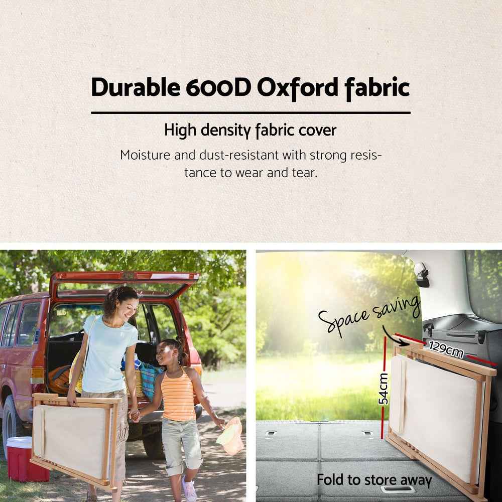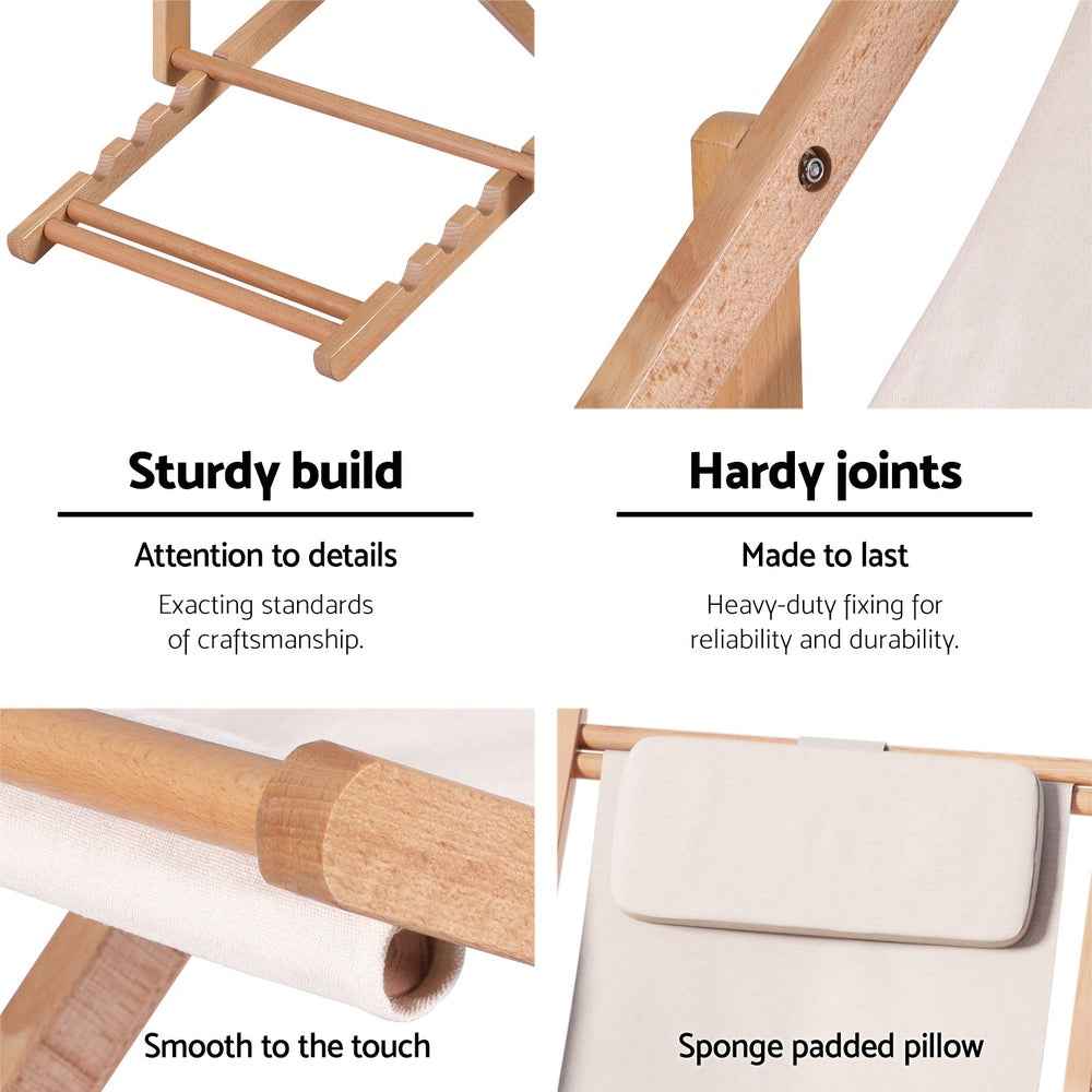Fabricada con madera de álamo natural y acabada con un barniz transparente, nuestra silla de playa es fuerte y resistente, con cuatro posiciones de asiento ajustables a través del respaldo para adaptarse a sus preferencias. A pesar de su peso ligero, la silla de playa tiene una capacidad de peso de hasta 120 kg y presenta una artesanía de calidad con fijaciones resistentes en todos los lados. Asimismo, el asiento de tela Oxford 600D duradera está diseñado para soportar los elementos y conservará su color y forma bien en el duro clima australiano. El asiento bien cosido también viene con una almohada acolchada adicional del mismo material para su mayor comodidad.
