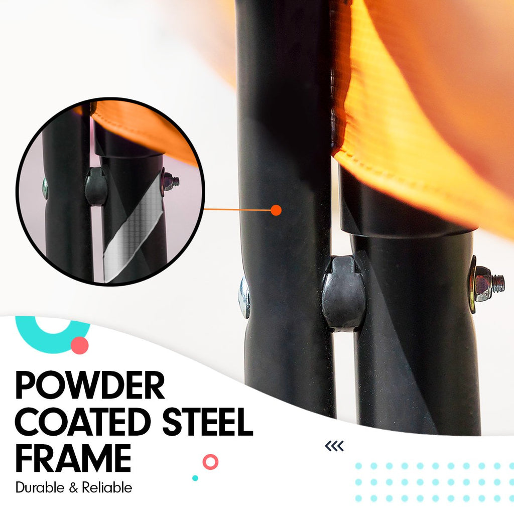 Este trampolín utiliza patas unidas para lograr una estabilidad superior y la estructura de las patas también minimiza la tendencia de las patas a hundirse en el suelo. Las patas también cuentan con barras de unión reforzadas para mejorar la resistencia y la estabilidad.