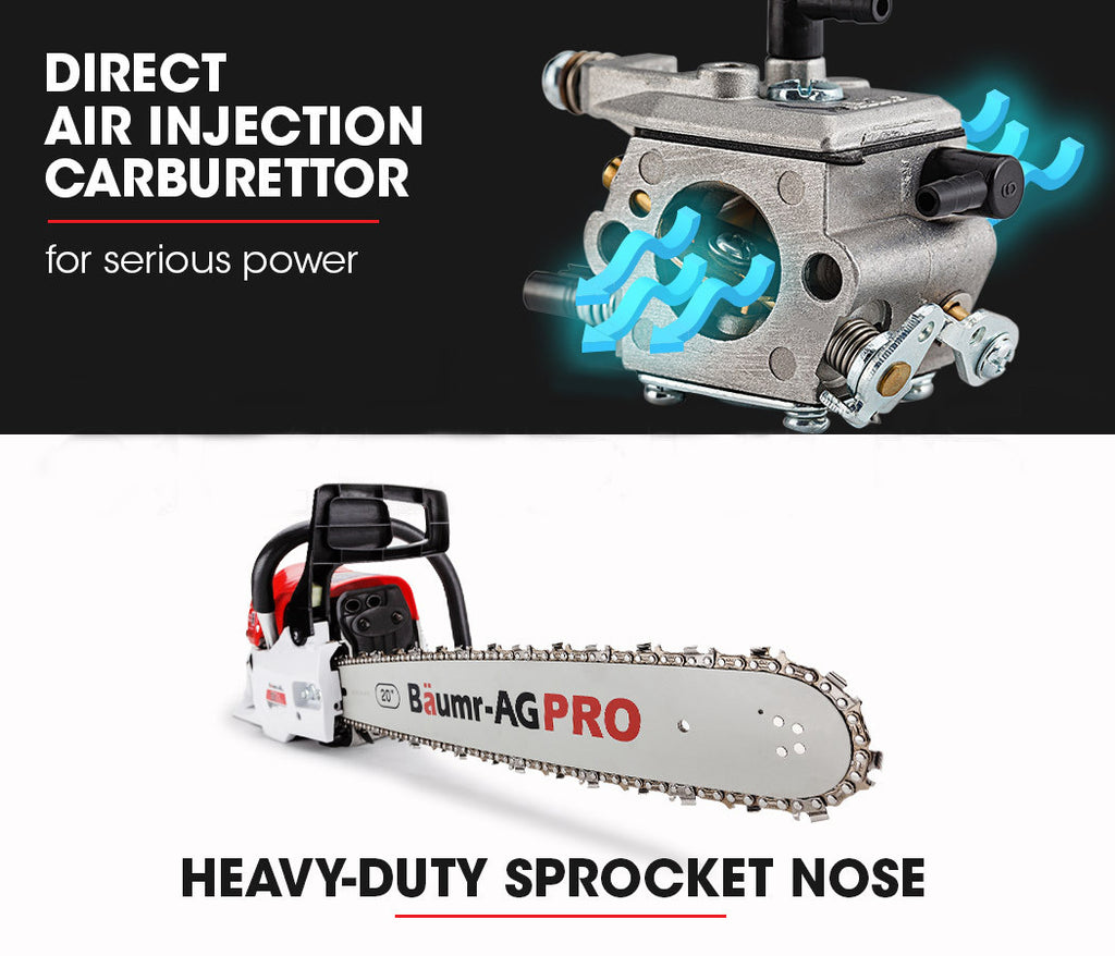 The Baumr-AG 62cc Pro-Series is a must have for any tradesman, commercial gardener or handyman. This class-leading commercial grade saw is designed and engineered specifically for low fatigue and great maneuverability.
