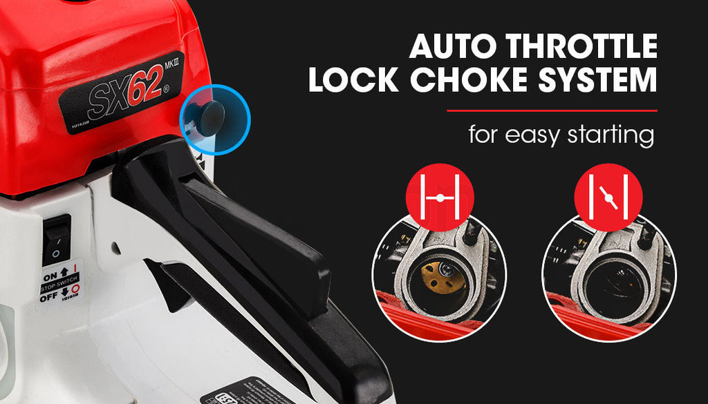 The SX62 is perfect for any application, whether it be preparing firewood, lopping medium to large trees, clearing those overhanging branches, removing bushfire hazards, or as a great companion on your next 4WD adventure or camping trip. Purchase AUSTRALIA's HOTTEST SELLING CHAINSAW TODAY and save hundreds off this top-of-line model.