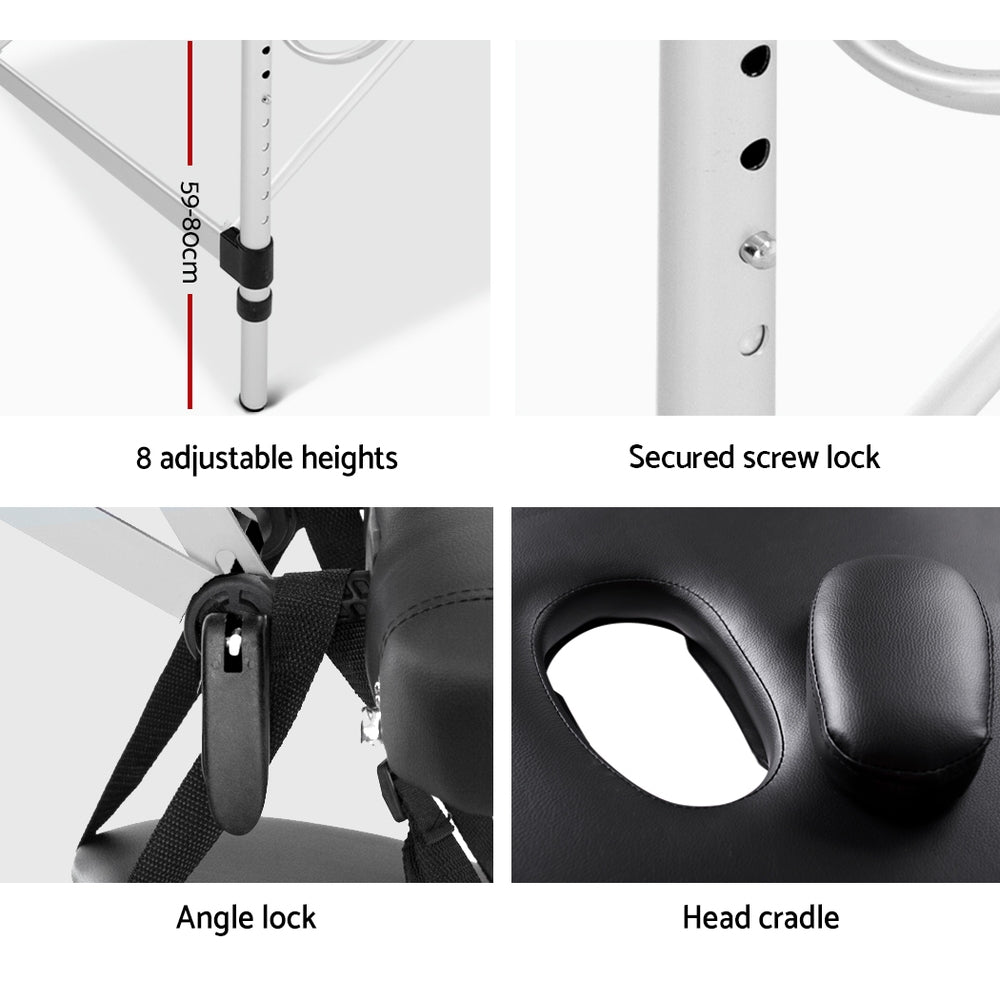 Zenses Massage Table 55cm 2 Fold Aluminium Massage Bed Portable Beauty Therapy Black