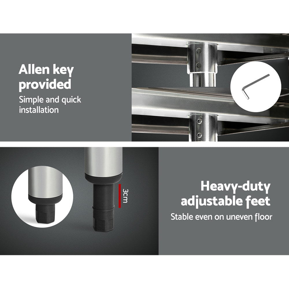 我们的不锈钢工作台面采用商用级 430 不锈钢制成,非常适合家庭、咖啡馆和餐厅使用。这款工作台比我们商店的标准工作台更宽,空间更大。经过处理的台面边缘为桌子周围的工作提供了额外的安全性,而可调节的底部搁板则为您提供了更多高度的储物选择。借助随附的内六角扳手,所有东西都牢固地固定在一起,安装快速简便。如果地板不平整,可调节的支腿可以轻松解决问题。