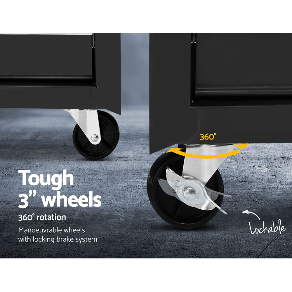 这款坚固的多抽屉 Giantz 工具车是任何车间的必备品。它由耐用的钢制成,配有光滑的滚珠轴承滑轨,方便取放,并配有安全的锁定系统。其宽敞的设计包括不同大小的抽屉,可容纳各种形状的工具,并配有防滑衬垫。该柜子还安装在带有可锁定前轮的万向脚轮上,确保平稳移动和稳定定位。它外观时尚,功能齐全,非常适合整理和保护您的宝贵工具。